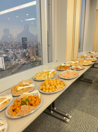 We stood together, enjoying the food prepared by the school. There were rice balls, fried snacks, and other light bites—a rich variety, all of which tasted great. I chatted with new friends I had made at Hosei University while eating, sharing funny stories from classes and our experiences of living in Japan. It felt so joyful to have such relaxed conversations with friends from different places. This exchange opportunity has been truly rare, and being able to meet so many wonderful friends made it even more precious. I will deeply cherish this experience and hold onto this special bond of friendship.