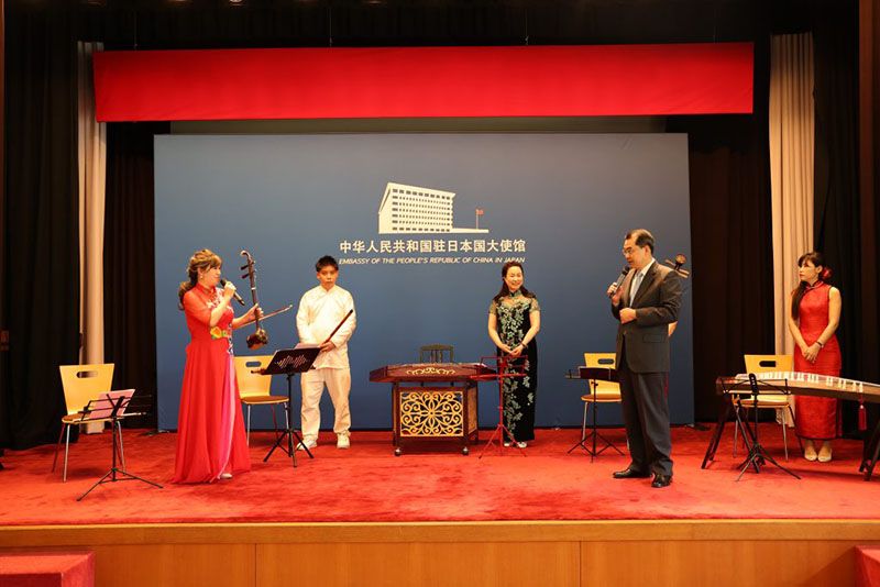 4月12日、中華人民共和国駐日本国大使館にて、本学学生と青年館員の交流会が実施され、廣瀬総長、コー理事、34名の学生が参加をしました。まず、中国の古典楽器の歓迎の演奏により会は始まり、呉江浩中国大使と演奏者により一つ一つの楽器について由来等、詳しく説明してくださいました。