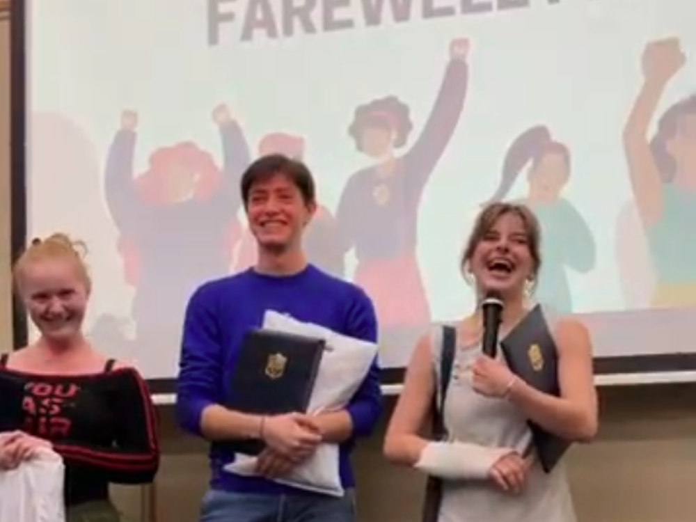 表彰式では交換留学受け入れプログラムに最も貢献してくれた交換留学生3名を表彰し、活躍いただいた感謝の気持ちと共に法政大学のグッズもプレゼントしました。