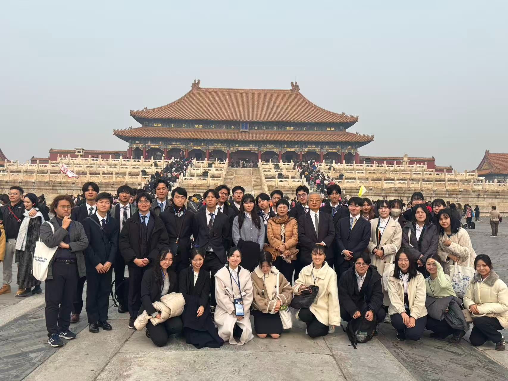 4⽇⽬、5⽇⽬は北京へ滞在し、北京⼤学での講義・交流会や市内⾒学で、中国の⾸都、北京の発展と⾊濃く残る⽂化の共存を体感しました。また、中国の発展を⽀える⾸鋼園区への訪問では、AIなどの最新テクノロジーを⽤いて、データ収集から介護補助、映画業界など幅広い分野で中国の技術が活躍していることを学びました。
